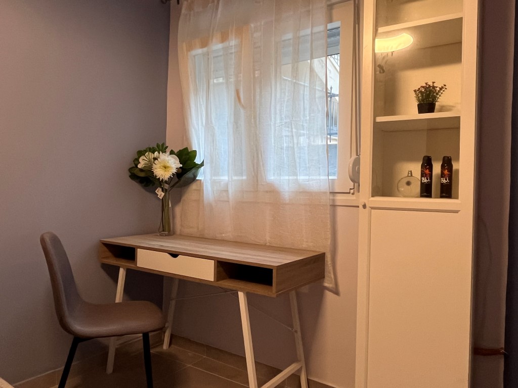 Επί της οδού Aισχύλου 23, πολύ κοντά στο Τουρκικό Προξενείο βρίσκεται ένα βολικό και πλήρως επιπλωμένο διαμέρισμα 34m2 που προσφέρει ένα άνετο και ευχάριστο περιβάλλον διαμονής. Είναι σε κεντρική τοποθεσία, πολύ κοντά στα Πανεπιστήμια της πόλης. Το διαμέρισμα είναι πολύ λειτουργικό, με μεγάλη και εκμεταλλεύσιμη εμπρόσθια αυλή. Διαθέτει κρεβατοκάμαρα και μια επαρκέστατη κουζίνα. Πρόσθετα χαρακτηριστικά: εύκολο και δωρεάν πάρκινγκ, Α+++ ενεργειακής κλάσης AC inverter, SmartTV και πλυντήριο. To διαμέρισμα είναι ιδανικό για κατόχους ζώων συντροφιάς.