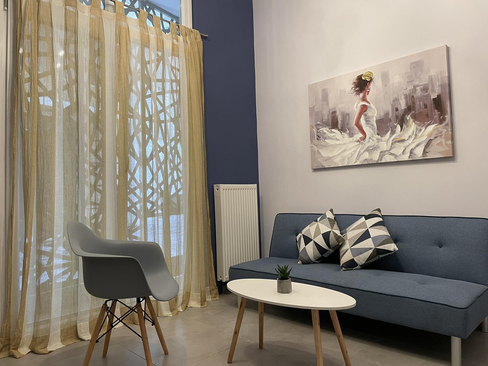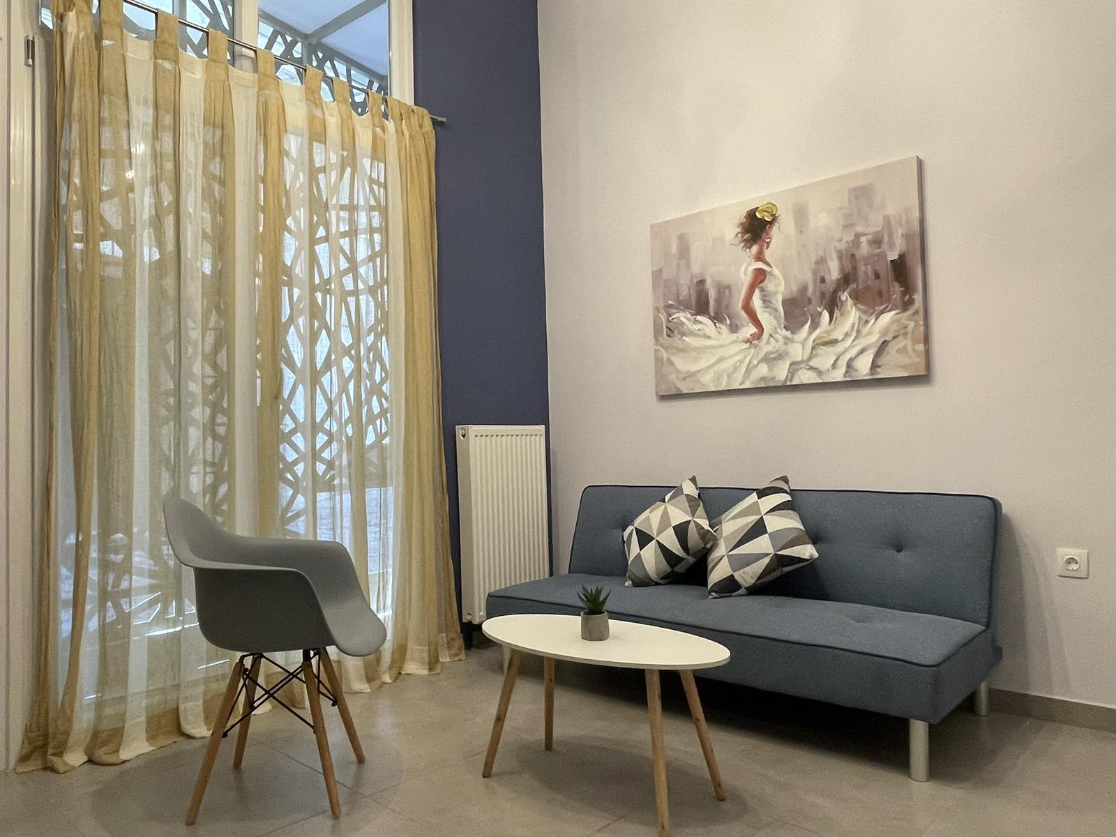 Επί της οδού Kαπετάν Άγρα, πολύ κοντά στην Αγ. Δημητρίου, βρίσκεται ένα βολικό και πλήρως επιπλωμένο loft 39m2 που προσφέρει ένα άνετο και ευχάριστο περιβάλλον διαμονής. Είναι σε κεντρική τοποθεσία, 50μ από κεντρική στάση λεωφορείων, 8 λεπτά από τον κοντινότερο σταθμό του μετρό Θεσσαλονικης. Το διαμέρισμα είναι πολύ λειτουργικό, έχει ξεχωριστή κρεβατοκάμαρα και μια ιδιαίτερα ευρύχωρη κουζίνα και τραπεζαρία. Παράλληλα διαθέτει βοηθητικό δωμάτιο φιλοξενίας. Πρόσθετα χαρακτηριστικά: εύκολο και δωρεάν πάρκινγκ, Α+++ ενεργειακής κλάσης AC inverter, ατομική Θέρμανση Φυσικού Αερίου, SmartTV και πλυντήριο/στεγνωτήριο