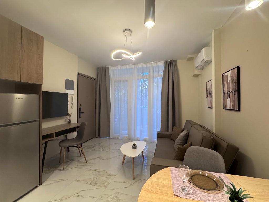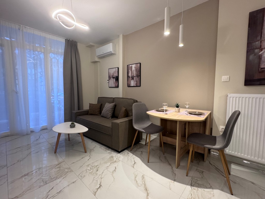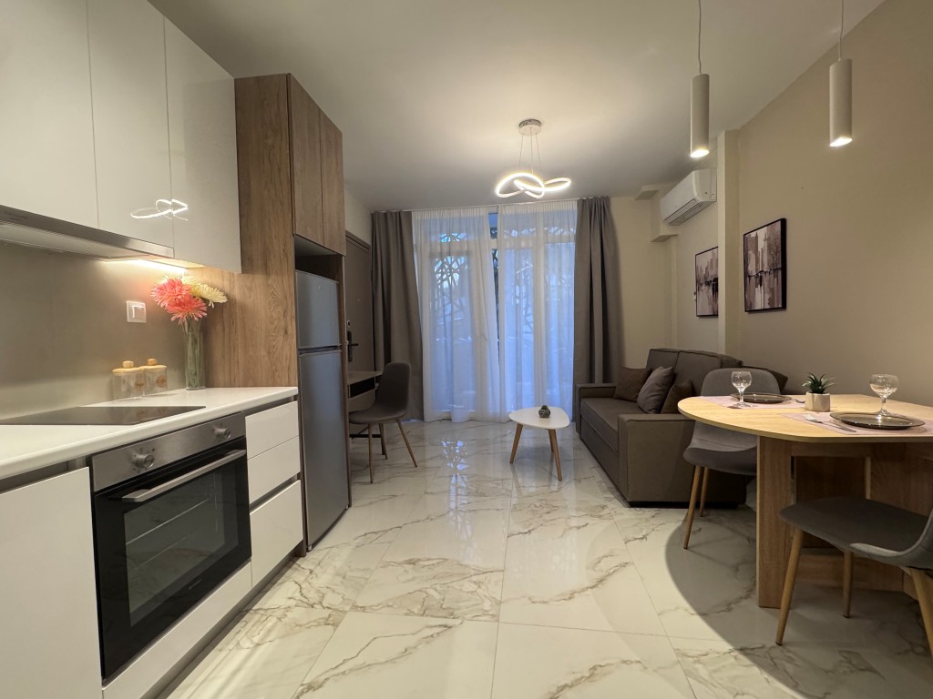 Μια ιδιαίτερα κομψή και μοντέρνα γκαρσονιέρα 36τμ στον ήσυχο δρόμο της Καπετάν Άγρα, 8 λεπτά με τα πόδια από τη στάση του μετρό της Πλατείας Δημοκρατίας. Διακοσμημένη σε ωραίους και σύγχρονους χρωματικούς τόνους, αυτό το ευρύχωρο διαμέρισμα θα σας κερδίσει αμέσως. Είναι εξαιρετικά άνετη, καθώς έχει 1 υπνοδωμάτιο, άνετο μπάνιο και μια πλήρως εξοπλισμένη κουζίνα. Διαθέτει εξαιρετικά ευρύχωρο καναπέ κρεβάτι δίνοντας τη δυνατότητα φιλοξενίας έως 3 ατόμων. Πρόσθετα χαρακτηριστικά: υψηλής ασφάλειας κεντρική θύρα, αυτόνομη θέρμανση φυσικού αερίου, πλυντήριο, Α+++ ενεργειακής κλάσης AC inverter, πολύ γρήγορο Wi-Fi και SmartTV με υποδομή Netflix.