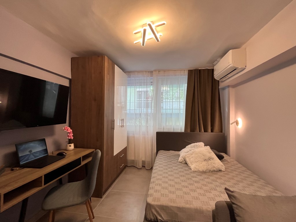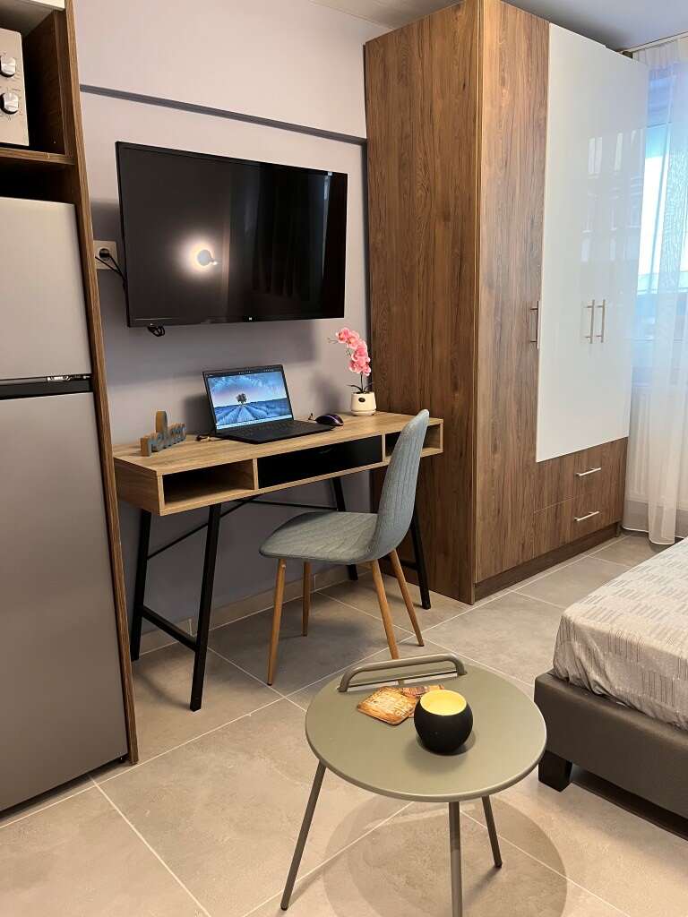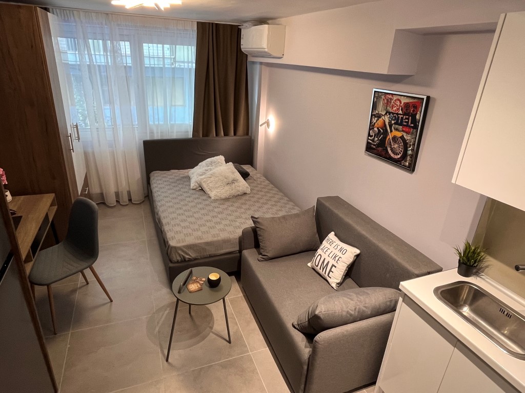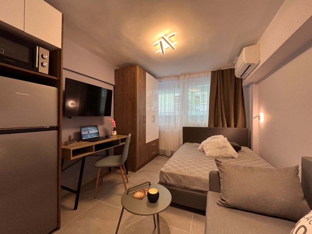 Ένα ιδιαίτερα κομψό και μοντέρνο studio 22τμ στον ήσυχο δρόμο της Μαβίλη στο κτίριο της 3ης Υγειονομικής Περιφέρειας. Απόλυτα λειτουργικό και διακοσμημένο σε ωραίους και σύγχρονους χρωματικούς τόνους, το συγκεκριμένο studio θα σας κερδίσει αμέσως. Είναι εξαιρετικά άνετο και πολύ λειτουργικό, ικανό να φιλοξενήσει έως 3 άτομα, καθώς διαθέτει 2πλό κρεβάτι και εξαιρετικά λειτουργικό καναπέ κρεβάτι, άνετο μπάνιο και μια πλήρως εξοπλισμένη κουζίνα. Πρόσθετα χαρακτηριστικά: υψηλής ασφάλειας κεντρική θύρα, αυτόνομη θέρμανση φυσικού αερίου, πλυντήριο και στεγνωτήριο, Α+++ ενεργειακής κλάσης AC inverter, Wi-Fi και SmartTV με υποδομή Netflix.