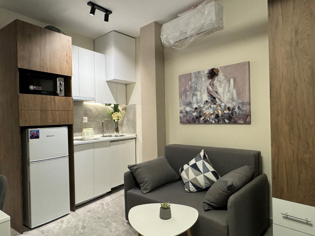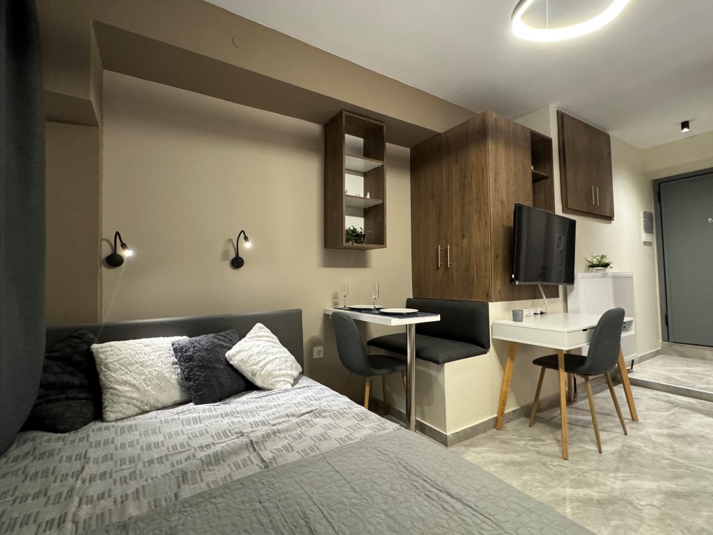 Ένα ιδιαίτερα κομψό και μοντέρνο studio 25τμ στον ήσυχο δρόμο της Οδυσσέως δίπλα στο μεγάλο κτίριο τoυ υπερμάρκετ Σκλάβενίτη, 50μ από τη στάση του μετρό της Πλατείας Δημοκρατίας. Απόλυτα λειτουργικό και διακοσμημένο σε ωραίους και σύγχρονους χρωματικούς τόνους, το συγκεκριμένο studio θα σας κερδίσει αμέσως. Είναι εξαιρετικά άνετο και πολύ λειτουργικό, ικανό να φιλοξενήσει έως 3 άτομα, καθώς διαθέτει 2πλό κρεβάτι και εξαιρετικά λειτουργικό καναπέ κρεβάτι, άνετο μπάνιο και μια πλήρως εξοπλισμένη κουζίνα. Πρόσθετα χαρακτηριστικά: υψηλής ασφάλειας κεντρική θύρα, αυτόνομη θέρμανση φυσικού αερίου, πλυντήριο και στεγνωτήριο, Α+++ ενεργειακής κλάσης AC inverter, Wi-Fi και SmartTV με υποδομή Netflix.